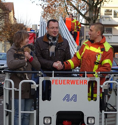 morgendliche Rettungsaktion der Feuerwehr verfolgte. Die Aalener Feuerwehr