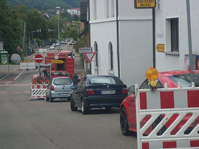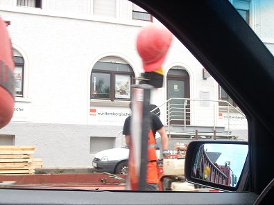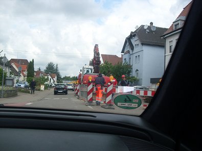 Bauarbeiter die Straße aufbuddelten. Fragt sich nur ob man diese Baustelle
