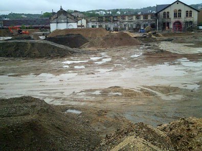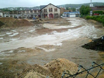 Uhr aus Wasser sammelt sich so langsam beim Regen: Hochwass-erschutz wurde beschlossen. AIZ-Fotos: Dieter Geissbauer