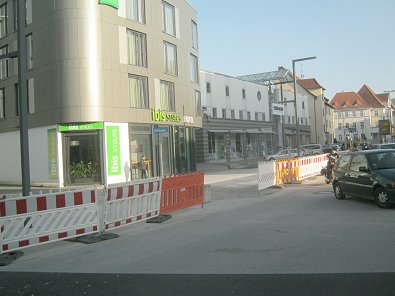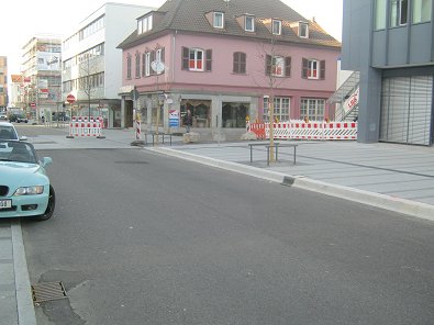 Sparkassen-Platz beginnt und wieder mit einer etwa 3 Zentimeter hohen