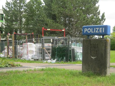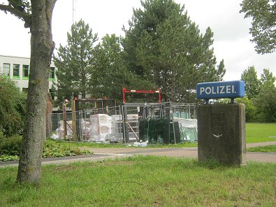 hat diese Materialien vor dem Polizeipräsidium auf der Wiese unter Bewachung