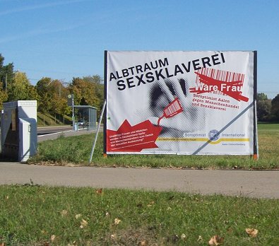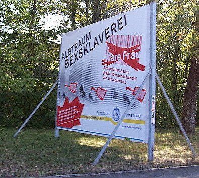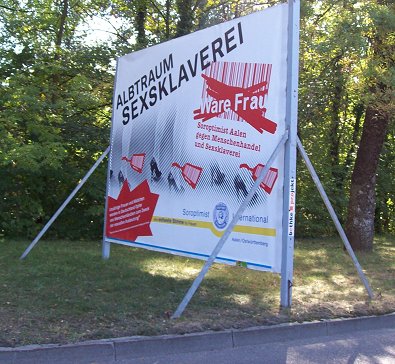 auch großformatige Plakate unter anderem gegen Sex-Mißbrauch aufstellte,