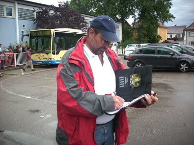 welcher die Ausfahrt des Busses behindert wurde von Ordnungsamtsleiter Maier