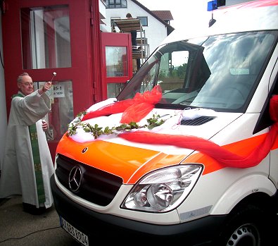 segnete im Gottesdienstes am Sonntag neues Fahrzeug.