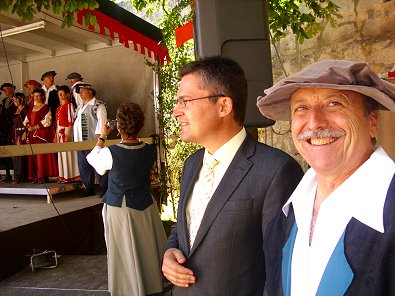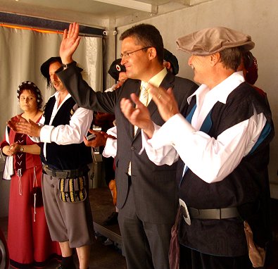 der Bühne sein Lob für das Heimatbewußtsein und die Tradition auszusprechen,