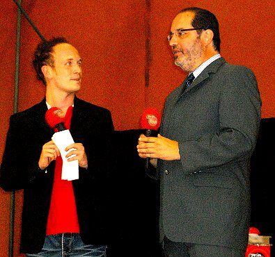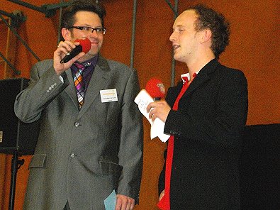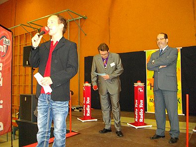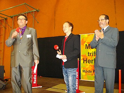 Radio-Tin-Moderator und Merz und Stadtbürgermeister Peter Traub.