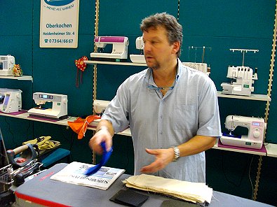 Stadtbürgermeister Peter Traub beim Besuch des Kaufmann-Standes aus
