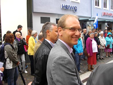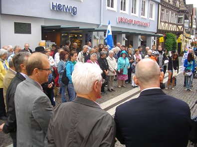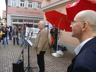Mahnwache um 11 Uhr am Marktbrunnen statt. Der Aalener Stadtpfarrer und