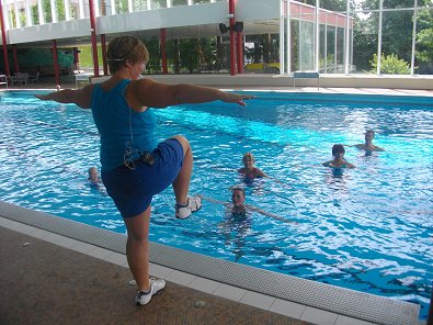 machte die Übungen auch ohne Wasser mit Freude und Genuß mit.