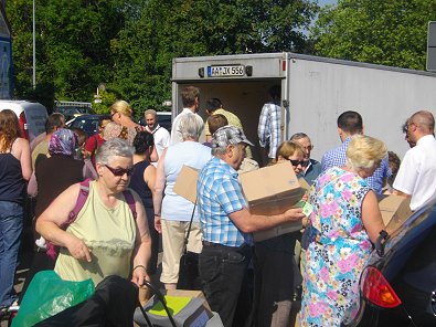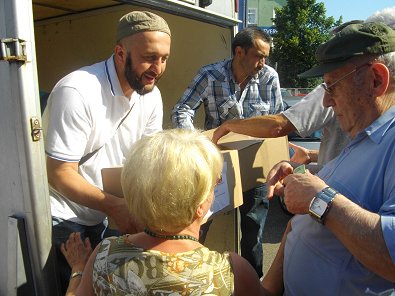 halfen bei der Verteilung der Spenden.