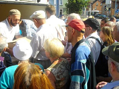 Beifall bevor Hungrige beschenkt wurden: