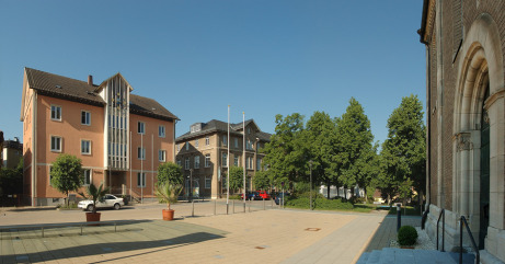 Form einer dreischiffigen, monumental wirkenden Basilika erbaut. Der Platz