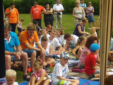 Gefeiert wurde der Gottesdienst auf dem Rasengelände des Ferien-heimes
