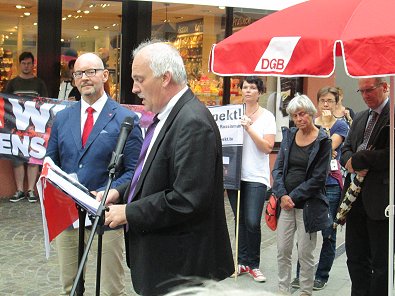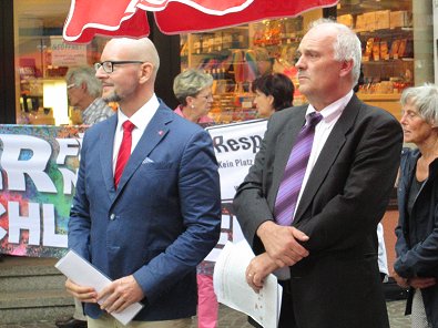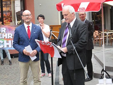 Zwar hat er an dieser besten Rede des Dienstag 2. September dem Antikriegstag in ganz Deutschland als Begrüßung gehalten wurde zwei Stunden bis zur Demo um 17 Uhr erst abgeschlossen aber sie hat es in sich:  Zur "Begrüßung zum Antikriegstag am 2.9.2015 am Marktbrunnen in Aalen" sagte der Aalener Stadtpfarrer und Pressesprecher der evangelischen Kirchengemeinde der SPD-Kreisrat und Papst der Armen und der Flüchtlingen Bernhard Richter wörtlich: