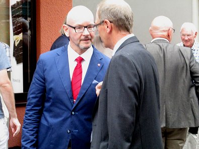 Evangelischer Kollege winkt dem Volk zu und Kollegen B. Richter.