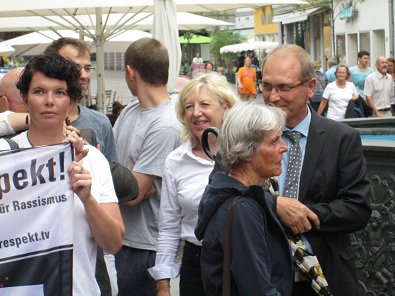 Lassen wir nicht zu, dass das Flüchtlingsthema (auch LEA) zu Wahlkampfzwecken missbraucht wird und dieses Problem auf dem Rücken der Flüchtlinge ausgetragen wird. Auch bestimmte Politiker zündeln mit ihren Worten und ihren Forderungen. Der Beifall der Kundgebungs-Teilnehmer wollte deshalb kaum enden.