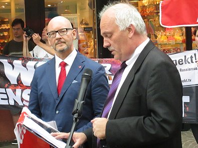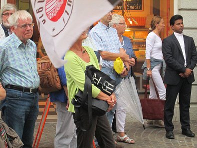 Sogar ein evgl. Pfarrer-Kollege (links) beteiligte sich an dem Protest