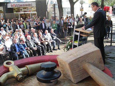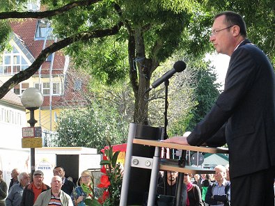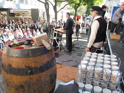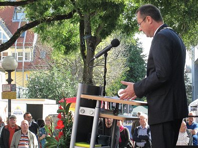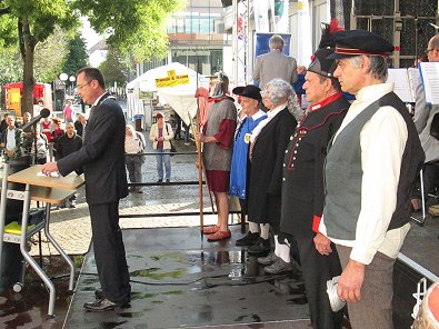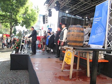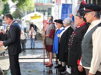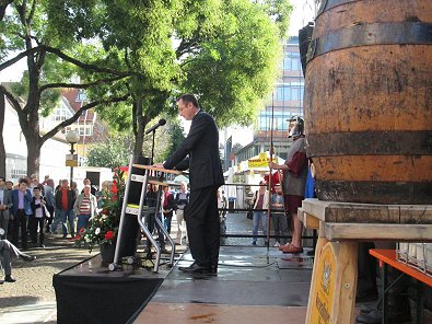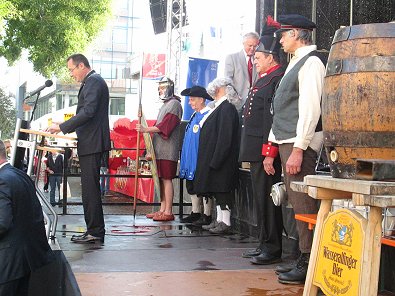 OB Rentschler bei Eröffnung der 41. Reichsstädter Festtage Samst-ag mit historischen lebenden Figuren bei der Ansprache/Faßanstich über die wir noch gesondert berichten.  AIZ-Fotos: Dieter Geissbauer
