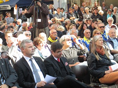 Diesen Teil der Rede veröffentlichen wir trotz dem Jubel der Wa-sseralfinger, Weststadt-Bürger und Hirschbach-Fans wörtlich, weil - wenn der Gemeinderat da mitmacht - ist dies zwar den Menschen wie aus dem Hetzen gesprochen, aber es gibt heute schon Zweifler ob OB Rentschier dies so durchziehen kann weil die Wirt-schaftlichkeit nicht gegeben ist für drei Freibäder. "Allerdings muss man rechnen dass von Ellwangen und Aalen Tausende Flüchtlinge nach Aalen in die 3 Freibäder kommen..." sagten Gemeinderäte der AIZ am Samstag auf Anfrage bei den Reichsstädter Tagen.