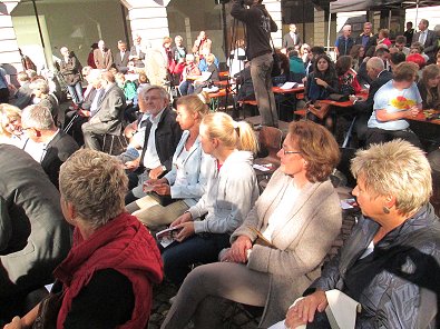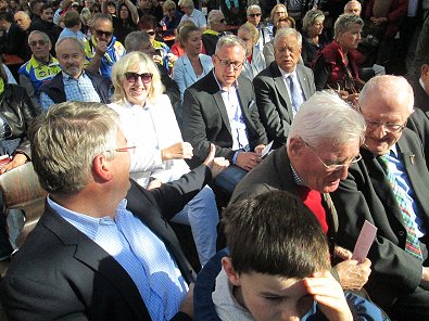 Andrea Hatam hatte ich in der 3. Prominenten-Reihe verzogen - laut amtlicher Sitzordnung in der Reihe mit den beiden Bürgermeistern Fehrenbacher und Jutta-Heim-Wenzler (beide werden nicht mehr ihr Amt antreten und Jutta-Heim-Wenzler sagte der AIZ "ich habe mich nicht mehr beworben - jetzt soll eben die Jugend mal ran") und atmete auf, als OB Rentschleer seine einstigen eigene Voraussage zwei Freibäder der Stadt Aalen müß-ten - weil es sich sonst nicht rechnet - schließen (die AIZ berichtete vor 6 Monaten ausführlich darüber).