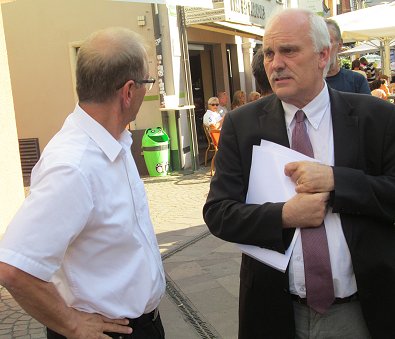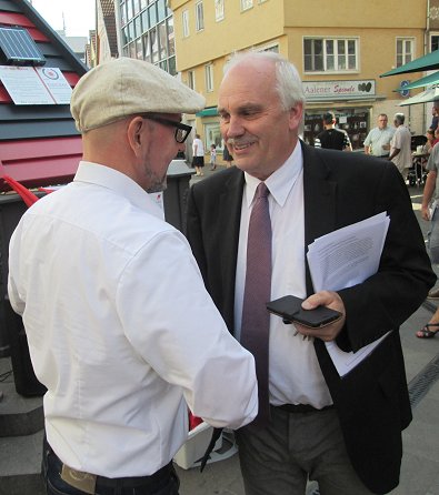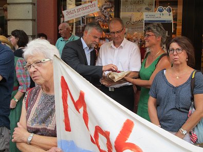 Kreisrat Berngard Richter, Josef Mischko und Demonstrant.