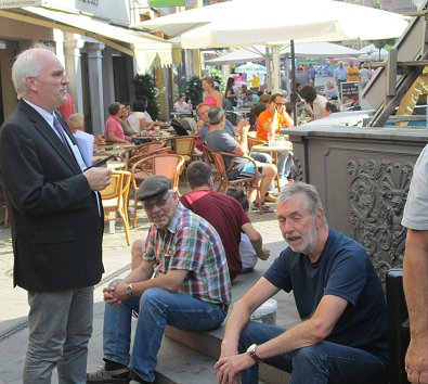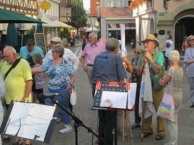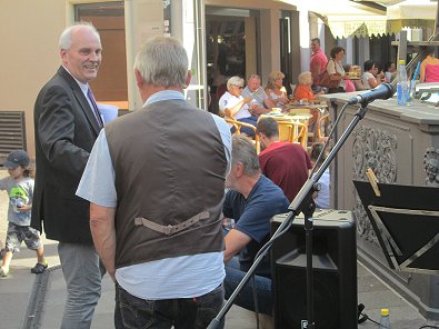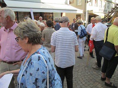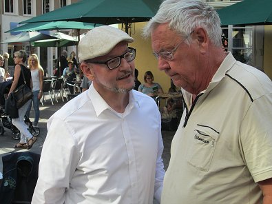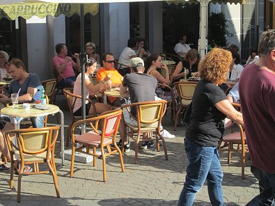 dazu gemischt auch unter diejenigen die an der Eisdiele nebenan und im Cafe