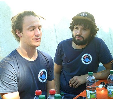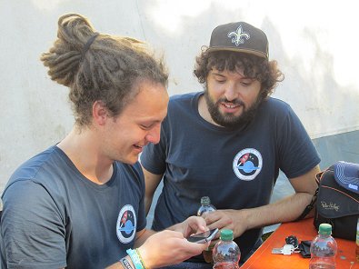 Drescher und das neue Redakt-ionsmitglied der AIZ und die Fahrerin Doroththe