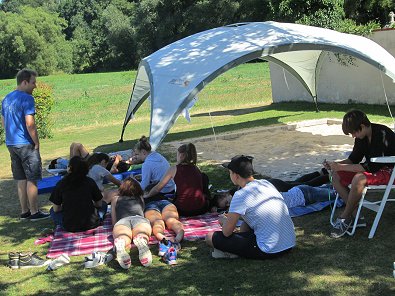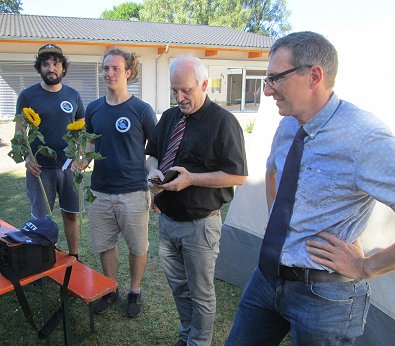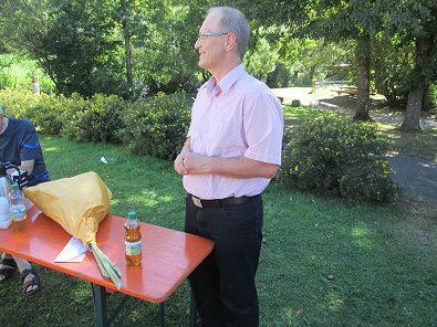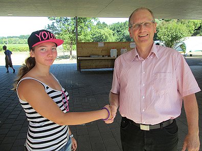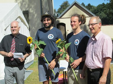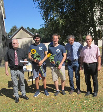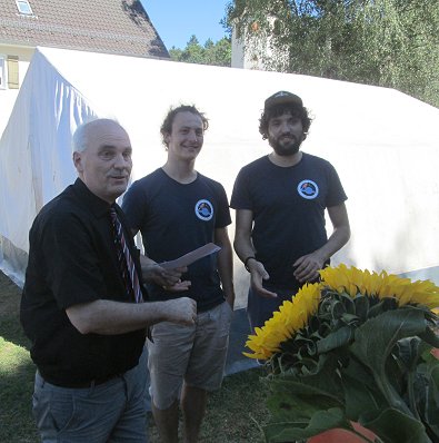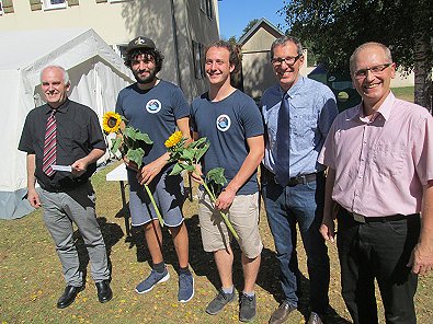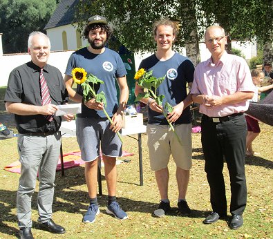 Mittwoch Von links: Pfarrer Rich-ter, die Sonnenblumen-Lagerleiter, Pfarrer